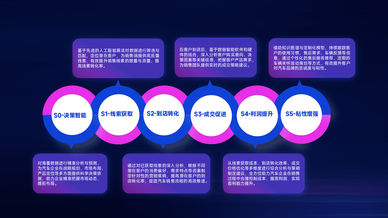 通过拓宽潜在客户来源、、、优化线索分配并提高到店转化率,,以增强销售效率。。。同时,,,利用线索数据不断优化分析模型,,,有效提升转化率,,扩大营销影响力。。。。